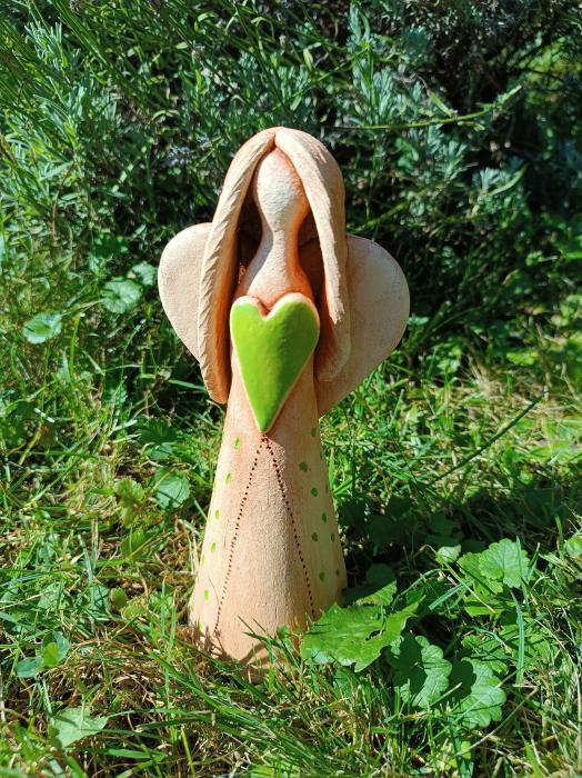 Tento keramický andílek v barvě terakoty, je ručně modelovaný