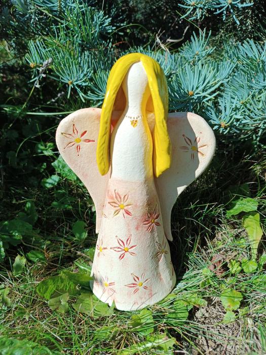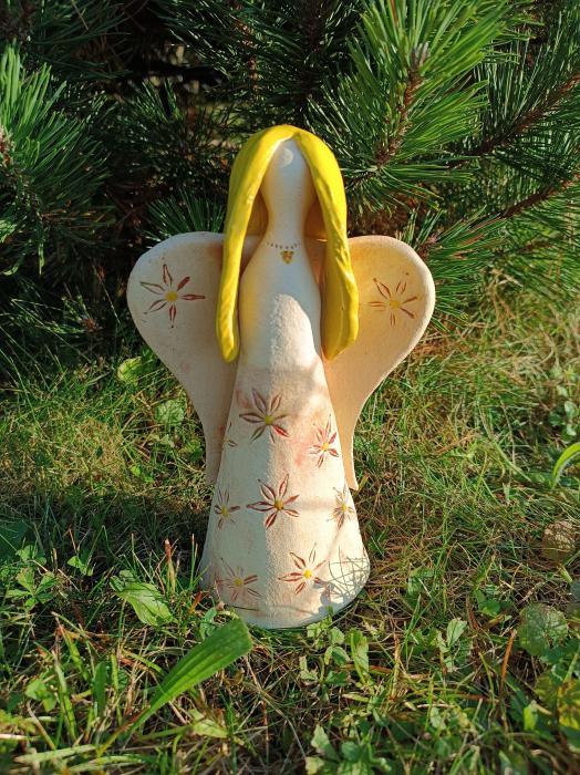 Tento slunečný keramický anděl je ručně modelovaný ze šamotové hlíny