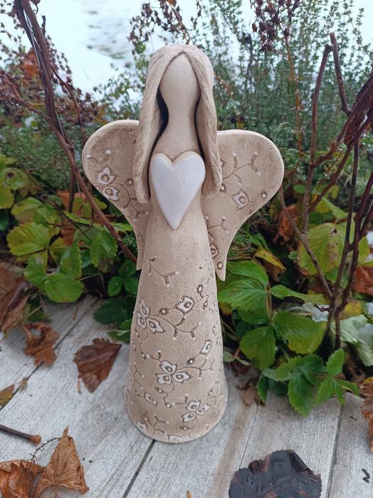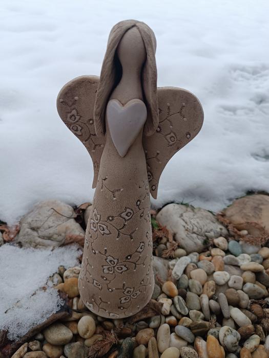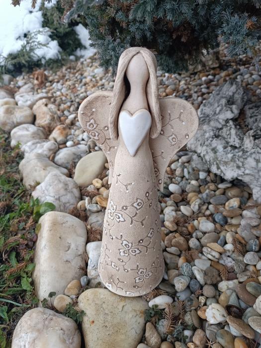 Keramický anděl je ručně modelovaný ze šamotové hlíny