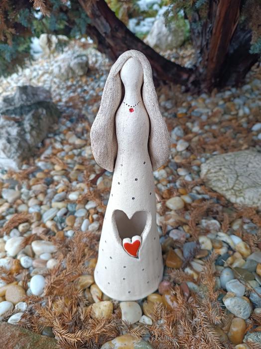 Keramická panenka ze šamotové hlíny je celá ručně modelovaná