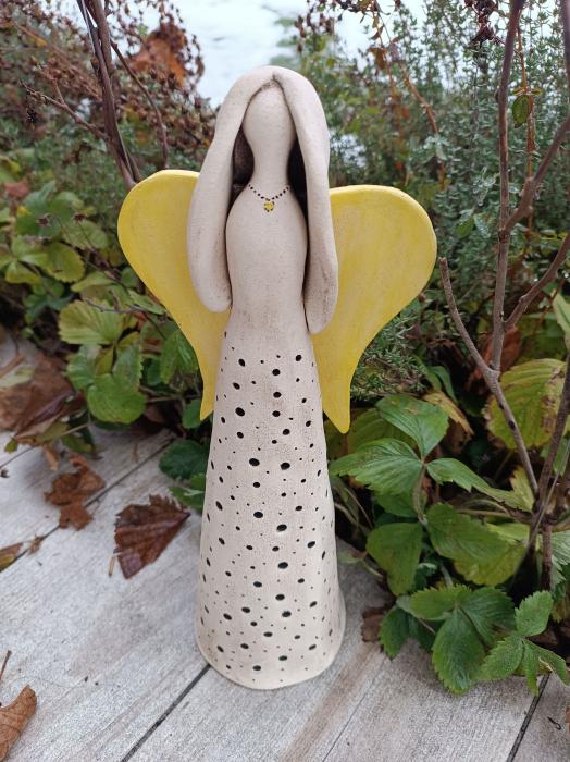 Keramický anděl je vyrobený ze šamotové hlíny a
