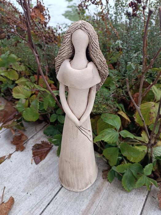 Keramická panenka, víla s kytičkou levandule. Květy levandule představují