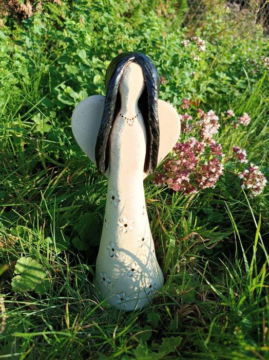 Tento keramický anděl je inspirován rozkvetlou loukou.