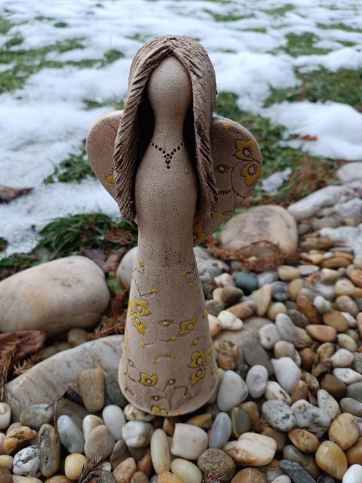Keramický anděl je ručně modelovaný ze šamotové hlíny