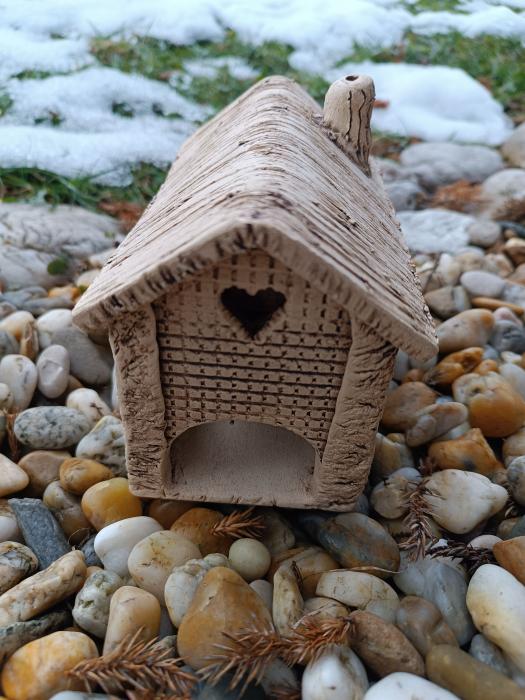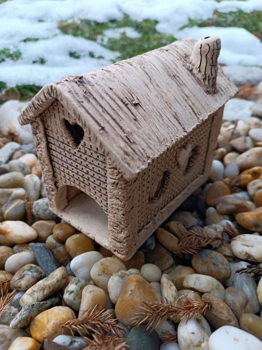 Keramický domeček v přírodním provedení je ručně modelovaný.