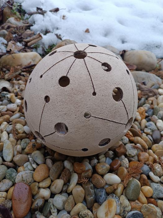 přírodním odstínu. Motiv na kouli zobrazuje světelné paprsky.