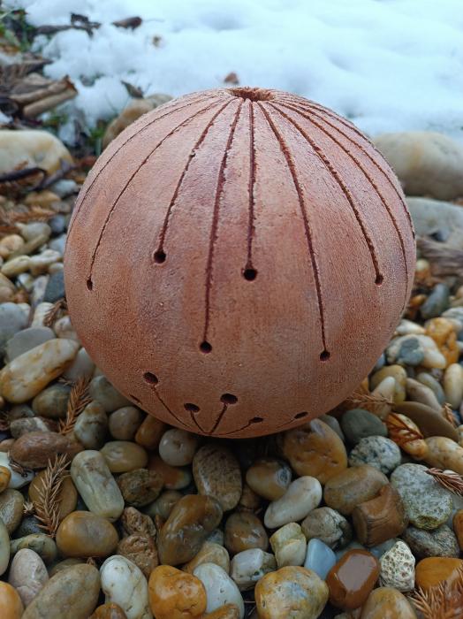 Tato ručně modelovaná keramická koule ze šamotové hlíny