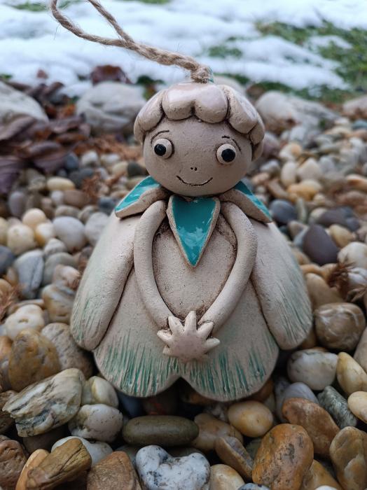 a zeleno - modrou glazurou. Je vyroben ze šamotové